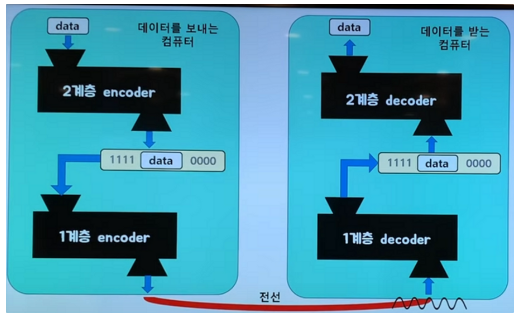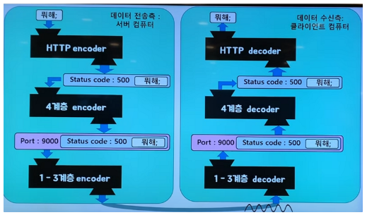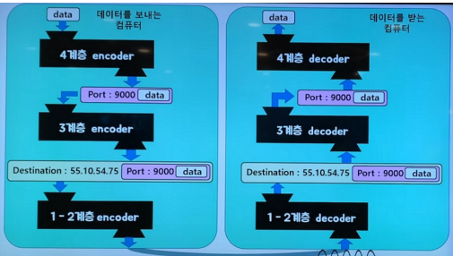 - 데이터 수신시 4계층에서 데이터를 합쳐서 5계층으로 전달