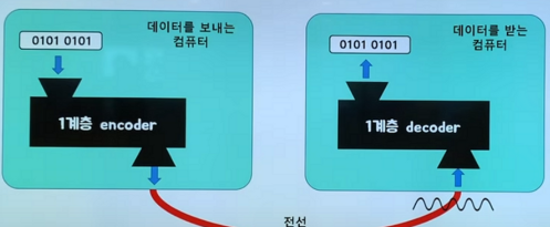 - 전기적, 기계적, 기능적인 특성을 이용해서 통신 케이블로 데이터를 전송