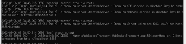 로컬에서 튜토리얼을 위한 오픈비두 서버 실행시 정상 작동 로그